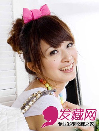想要变身瓜子脸也不一定非要披肩发才好,这款斜刘海丸子头就是一款很好的发型,但是mm要注意千万别把丸子束在头顶了哦~