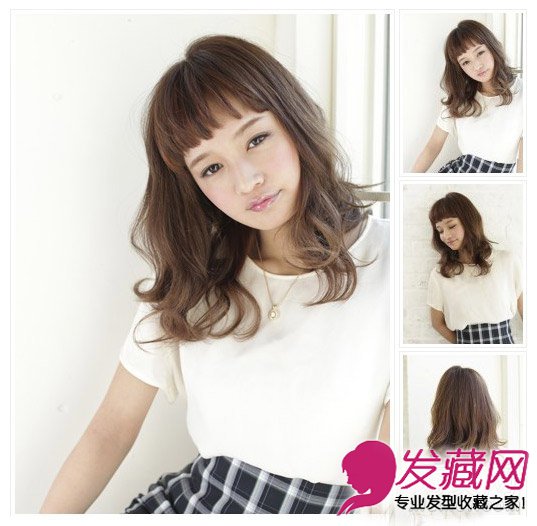 发型点评:这款长脸女生适合的卷发将碎发刘海遮盖住额头,留出眉毛,既能修饰脸型,又显得清爽十足。