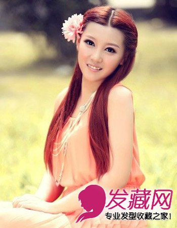 气质的中分公主头发型,将两侧的发丝半扎到脑后形成优雅公主头发型,酒红色的发色搭配上柔美的长发直发发型,显出柔美的一面。点缀上头花更显恬静与田园风。