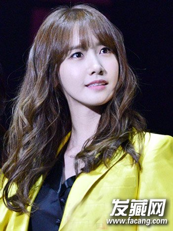 长脸适合什么发型?长脸MM最爱的一款齐刘海卷发发型,深棕色的染发莹亮柔顺,浓密的发丝配合修剪整齐的齐刘海,甜美修颜。