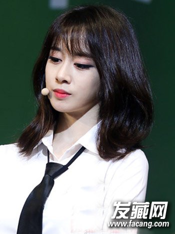 适合中长发女生的一款齐刘海发型,齐肩的烫卷发丝蓬松感十足,修饰脸蛋,蓬松的碎剪刘海遮住脑门清新修颜。
