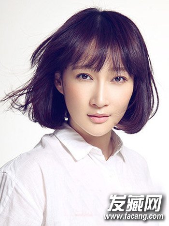 长圆脸女孩,短发最好带点烫发设计,发尾做个内扣超级修颜,剪个可爱的韩式空气刘海也是不错的选择,碎齐刘海打在脸颊,清爽又不失女人味。