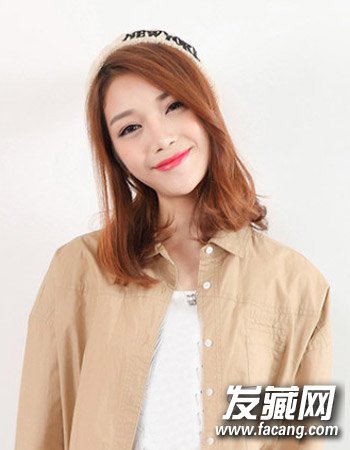 利用的是明亮的橘红色染发颜色来衬托出女生肤色的白皙感,而且还有增添女生的青春活力感,再搭配偏分的齐肩内扣梨花头同样很显长脸女生的温柔气质风。