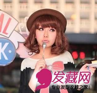发丝的颜色很像芭比娃娃般甜美可爱哟,中短的长度正好至下巴处,服装与帽子的搭配还带有潮流的学院风小女生色彩呢。