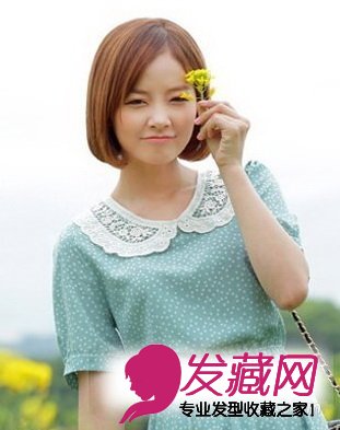 清新感十足的短发发型,柔软顺直的发丝,绽放出女性清新甜美的气质,发尾微微有些内扣的效果,很有修饰脸型的功效,搭配斜刘海发型,更有清新自然的味道。
