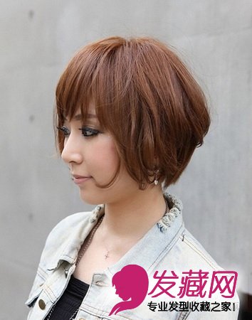 此款短发重点在发端的弧度能很好地遮掩了微胖的脸蛋,让圆脸必成小脸。