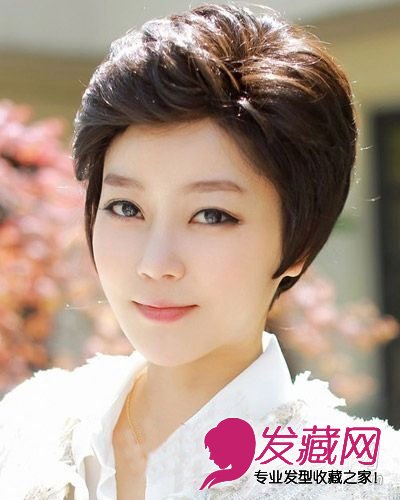 发顶蓬松,刘海也全部向外,干练。