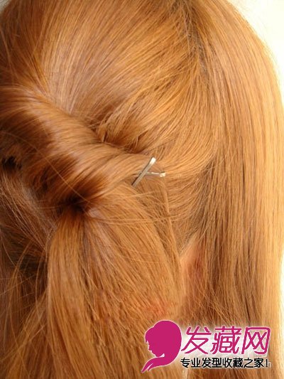 长发发型扎法步骤6:接着用夹子固定好刚刚调好位置的发束。