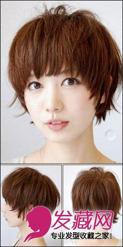 非常典型的一款短发造型,头顶选择了零碎的蓬松效果,搭配上齐刘海,看起来非常的恬静。