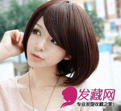 小编点评:这款适合气质女生,一看就是比较文静的发型,斜刘海中短发,可以完美的修饰脸型,想变小脸的话,这款很合适。