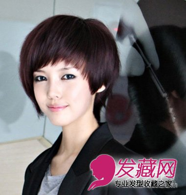 颜色不仅映亮头发,更能提亮肤色,增添发型的时尚和帅气。图片中斜刘海酒红色超短发,就以短发的干练利落,垂落有型,塑造职场的时尚与帅气,今年得到众多美眉追捧