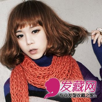 这款韩式蛋卷头发型看上去很时尚哦,耳朵以下打造蓬松的烫卷,修饰脸型又很潮,碎碎的刘海让女生更加可爱。