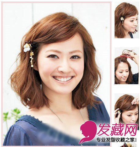 第二步、再往一侧抚平,用小号发夹固定在耳侧。