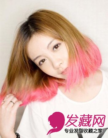 渐变是今年非常流行的发型,这款不会太偏向原宿风,在惹眼吸睛的同时又保持了低调感,黄色与粉红的搭配不会让人觉得突兀,反而有种青春的感觉哦,中分的发型最能瘦脸呢。