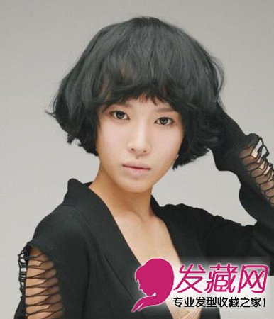 纯黑色的自然短发很受MM的欢迎,无论你是什么脸型什么气质,这款短发都能完美的突出你的优点,刘海和两侧的头发都带有一些卷度,却不会显得太做作,很自然清新的感觉