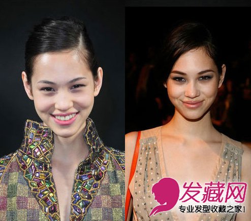 把短发全部放到一边,这样一款造型,很有星味