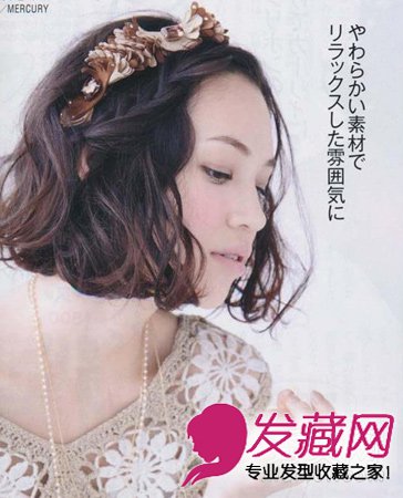 中分的短卷发非常的可爱随意,配上好看的发箍,更是灵气