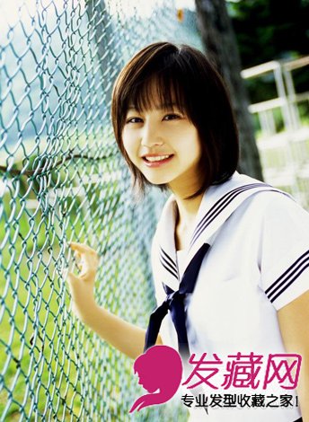 超级清纯的简单刘海短发发型,很适合学生MM们哦,配上制服校园风十足呢。甜甜的笑容,真不愧为日系的清纯美少女。