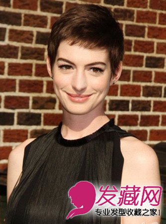 安妮·海瑟薇(Anne Hathaway)从人们心目中经典的淑女形象“变身”为帅气假小子,这个boy风短发可谓是“公主”的一个大突破。额前短少的刘海俏皮可爱,两旁头发齐耳的处理让她充满孩子气,充满灵气的棕色大眼睛加上棕色帅气短发,这样的“公主”你还爱不爱?