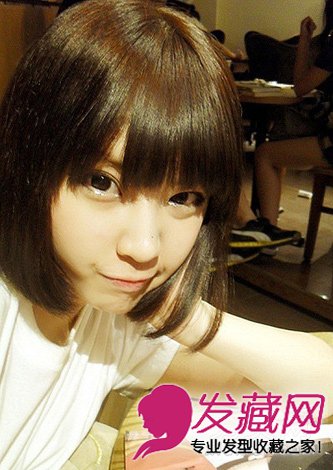 齐刘海的波波头短发发型,是一款韩式的女生短发发型。依旧走的是甜美可爱的路线,非常自然的一款短发哦!