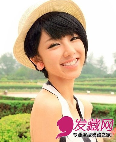 斜刘海的超短发发型,一般这种超短发是个性女生的最爱。搭配上一定草帽,是不是瞬间就很有田园风呢?