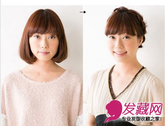 齐肩发当然可以盘起来,重点就是如何盘出花样,在保留修颜刘海前提下,将头发盘出带有复古小清新效果的淑女盘发样式。