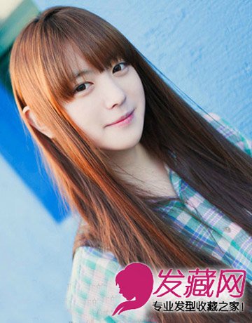 齐刘海发型搭配上清新的长直发造型最能体现出气质的形象。加上深棕色的染发造型后更是时尚靓丽。
