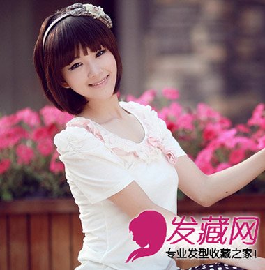 韩式齐刘海波波头短发,这样的栗色系染发也是很潮流的女生染发颜色,搭配甜美的发饰,低调有很显气质。