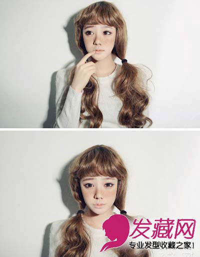 如何将长刘海打造成超短刘海?其实不一定要用剪刀,将刘海用卷发棒往内轻轻收卷就能做到眉上刘海的效果。微微凌乱的刘海不经意的散在额上,长卷发的mm可以搭配青春无敌的双马尾。减龄效果一流!