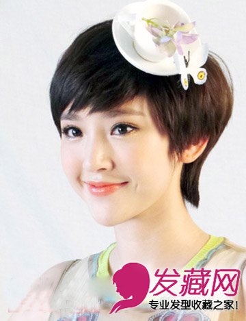 清新的女生短发,碎发长刘海略着眼睛,营造出可爱的色彩感。利落又不失饱满的发型戴上小帽饰,瞬间提升你的时尚指数。