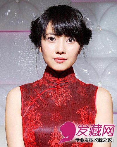斜刘海搭搭配盘发的发型让圆圆失去灵动可爱的感觉。