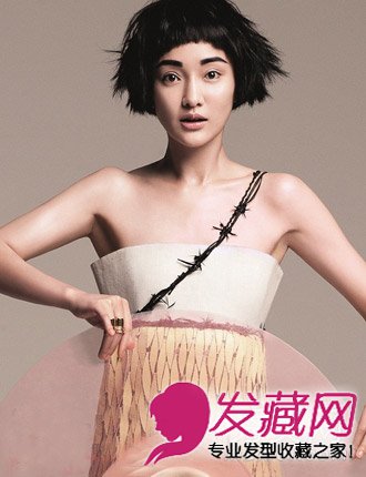 周迅的短发型就非常减龄,俏皮可爱的西瓜头造型,蓬蓬的发丝,浓浓的眉毛十分可爱有个性,搭抹胸裙时尚靓丽。