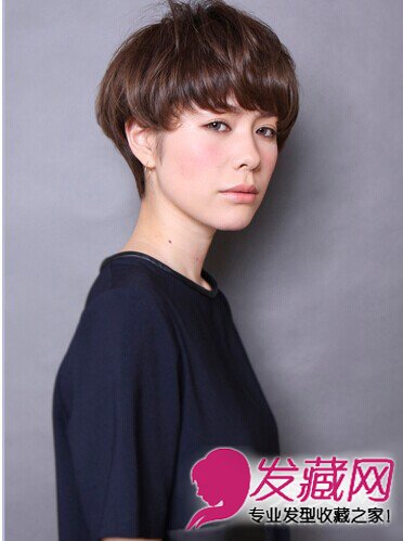 深棕色的染发颜色散发出时尚的感觉,加上碎发短发造型有种干练也很帅气的效果,清爽的造型让人无法拒绝!