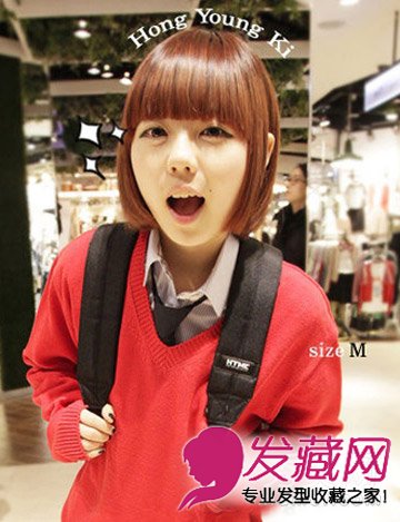 韩式的乖乖女短发发型,bob造型的青春洋溢,齐刘海的呆萌修颜,很好打造出好看的学生短发,毛衣衬衫背上双肩包,真的很可爱。