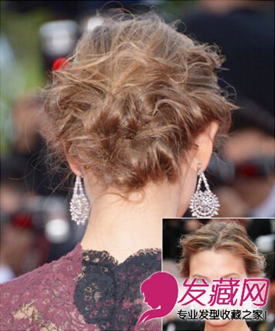搭配一身华伦天奴高级晚礼服,超模卡莉把凌乱的团子头演绎出精致的感觉。造型的关键在于先把头发做出波浪感,往后梳,再松垮垮地固定在脖子后方。