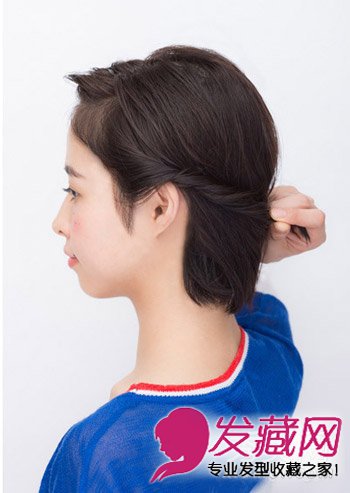 step2:再将左侧的头发扭转成发辫后固定在脑后。