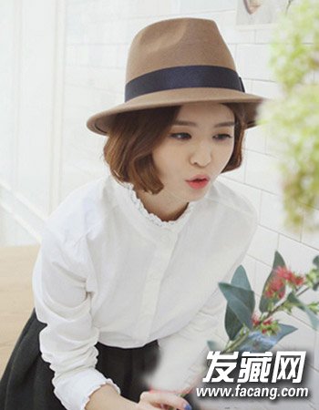 超有气质的一款淑女短发也是妹子们不能错过的哦,时尚的韩式短发发型,简单的短发烫发打理,搭配上淑女装与帽子尽显甜美与可爱。