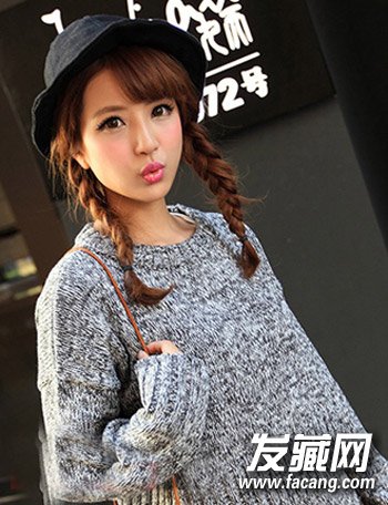 麻花辫代表着一种青春不败的情结,长发编两个精致的麻花辫,一顶时尚的小礼帽,洋溢着少女的复古可爱。