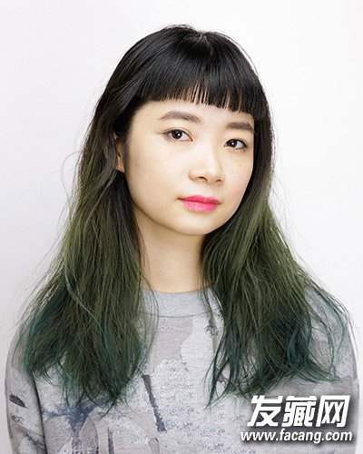 这种渐变色头发充满时尚个性,抢眼吸睛却一点都不浮夸,蓝绿渐变给人一种酷酷的感觉,而最流行的“姐姐”式刘海也是加分点哦。