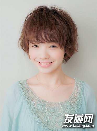 发型点评:空气感刘海与蓬松短发也能碰撞出时尚的花火,长刘海遮盖额头,蓬松的烫发效果修饰脸部线条,让你的头型看起来更加饱满,清新气质十足。