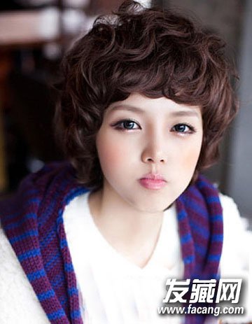 再是一款可爱俏皮风式的女生短发发型,将时尚的染发与烫发相搭的一款时尚短发造型,类似于纹理烫的蓬松烫发设计再配合这种清新自然的棕色染发同样呈现出一个可爱甜美的洋娃娃形象。