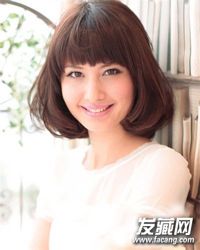 一款短发内扣的波波头发型,刘海与发型搭配显露出别致的莹润感,柔顺的发丝裁剪出个性的造型来,短发内扣显露出时尚与个性的一面,搭配帽子尽显可爱。