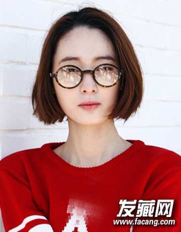 一款颇有学霸气质的中短发发型,彰显出无比的颇有才气的感觉来, 浅色的栗色发色自然不张扬,搭配上眼镜完美勾勒出校园气质。