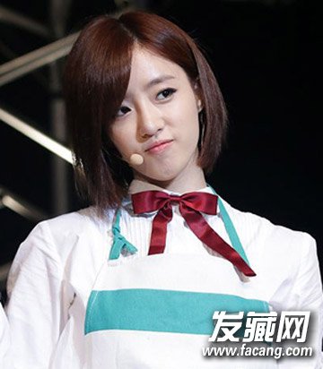 这款甜美的韩式波波头短发,对于很多妹纸来说是不错的瘦脸发型,斜刘海配合内蓬的短发清新修颜,甜美减龄。