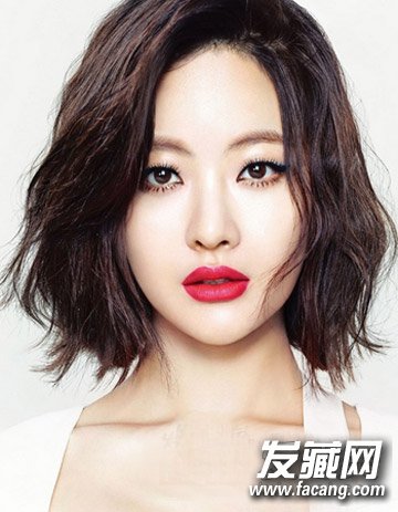 气质的短发空气烫发发型,细密的发丝贴合侧脸勾勒出别致的妩媚与动人气质来,起到很好的瘦脸修颜感来,微微的蓬松感搭配上性感红唇勾勒出无比的魅惑。