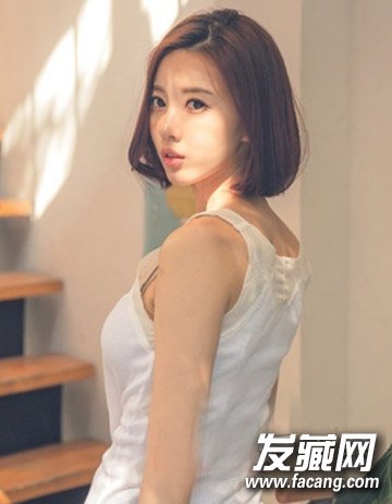 一款甜美的齐肩短发发型,柔顺的短直发显露出别致的时尚感来,加上发尾小小的内扣显露出别致的优雅淑女气质。