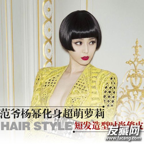 超服帖短发蘑菇头造型,超短发加上油头的设计增加性感指数,弧形刘海很好的展示了范爷的五官。