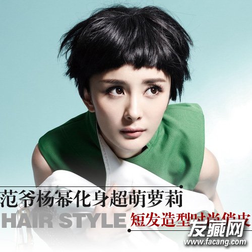 这是杨幂为陌森太阳镜代言的造型,这款超短蘑菇头造型显得她机灵动人,充满灵动气息。