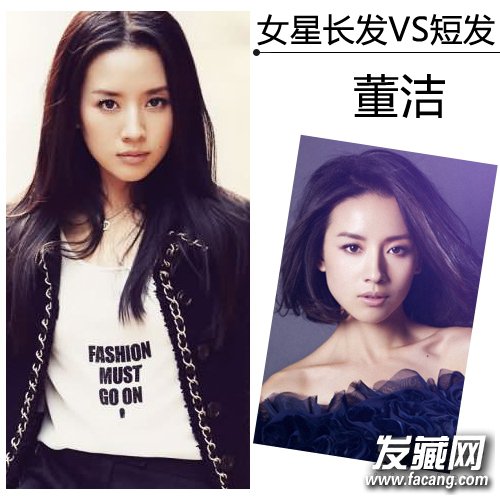 淑女气质长直发的董洁,塑造了一个温婉优雅的东方女性形象。但换上简单内扣斜分刘海波波头的董洁,给人一种忧郁淡雅的气质,让人眼前一亮。