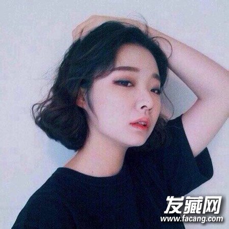 短发女生们很爱的一款中短发发型,露出额头的发型设计显露女生精致容颜,短卷发配上空气感十足的烫发,简单好打理,兼具长发和短发的优点。